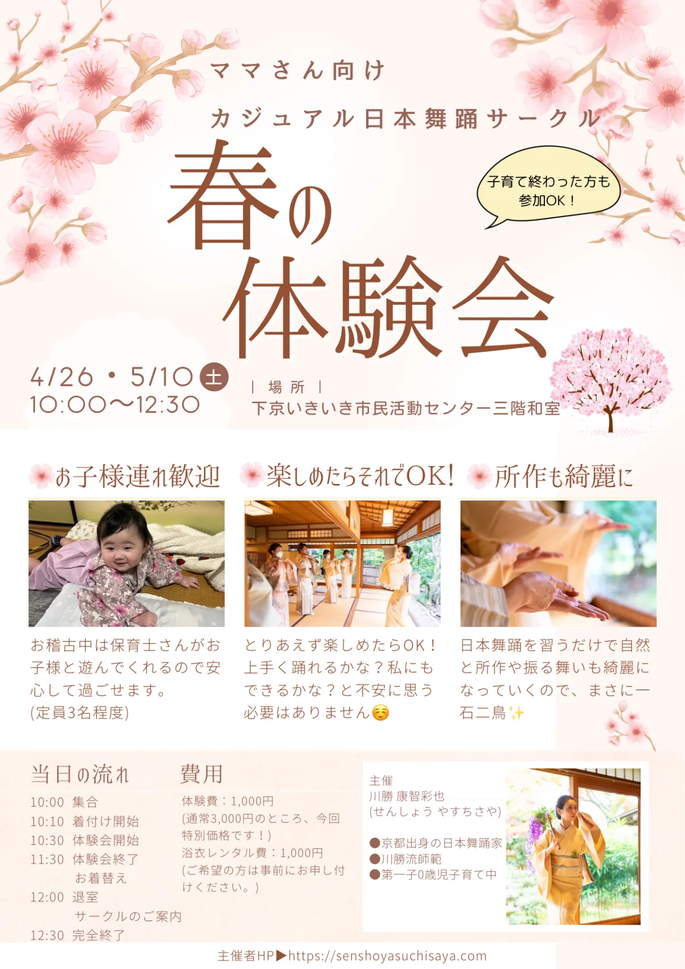 新しい趣味を始めたい方や、お受験のためにお子様の習い事をお考えの方に、京都にて伝統舞踊をお伝えする教室を開いています。3歳前後の小さなお子様から大人の方まで、幅広くお越しいただき柔軟なカリキュラムで長く続けていただける環境を整えています。日本文化への知識を深め人間力を高めるお稽古を行っています。